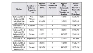 These projects, spread across Texas, involved hundreds of thousands of dollars in payments from homeowners who believed they were investing in legitimate homebuilding services.