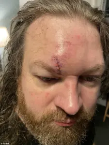A woman who identified herself as the wife of the injured father shared a photograph of his facial injuries on Reddit, including a deep gash above his eye that required medical attention. ‘Hey guys…soooo that was my husband getting hit,’ she wrote alongside the image.