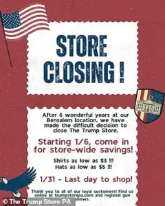 The Trump Store in Bensalem, Pennsylvania, a hub for MAGA merchandise and a symbol of political fervor for years, is set to close its doors after six years of operation.