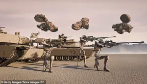 The Pentagon chief said the military must become an ‘AI-first warfighting force’ to stay ahead of adversaries (artist impression of robots fighting a war)