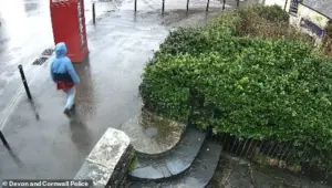 The latest CCTV footage, released by Devon and Cornwall Police today, shows Key walking past the Wellington Pub on Old Road in Boscastle at 3:25 p.m. on Saturday, heading toward Boscastle Harbour and the River Valency.
